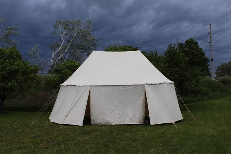 Zapínání stanu je řešeno pomocí olivek a kožených poutek. Poutka na kolíky jsou z pevné hovězí kůže.