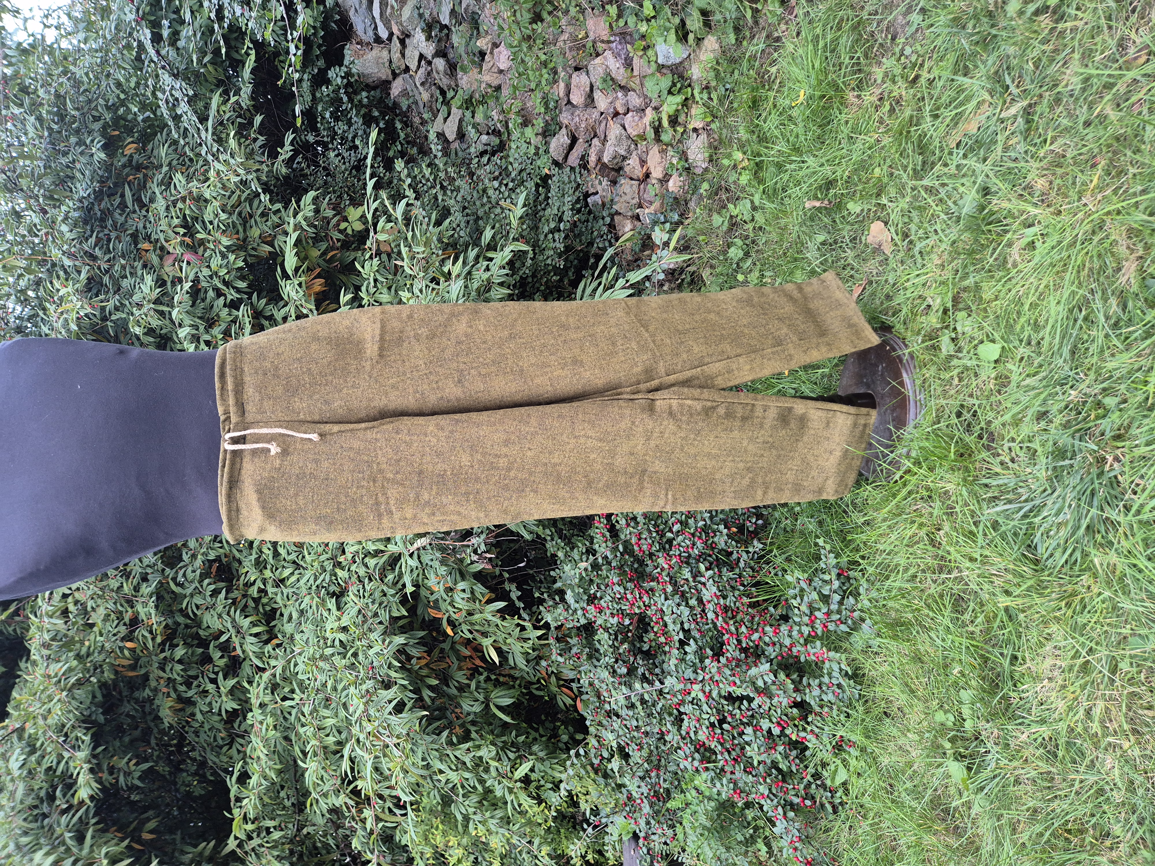- Kalhoty vlněné žluto-antracitová melanž vel. 24