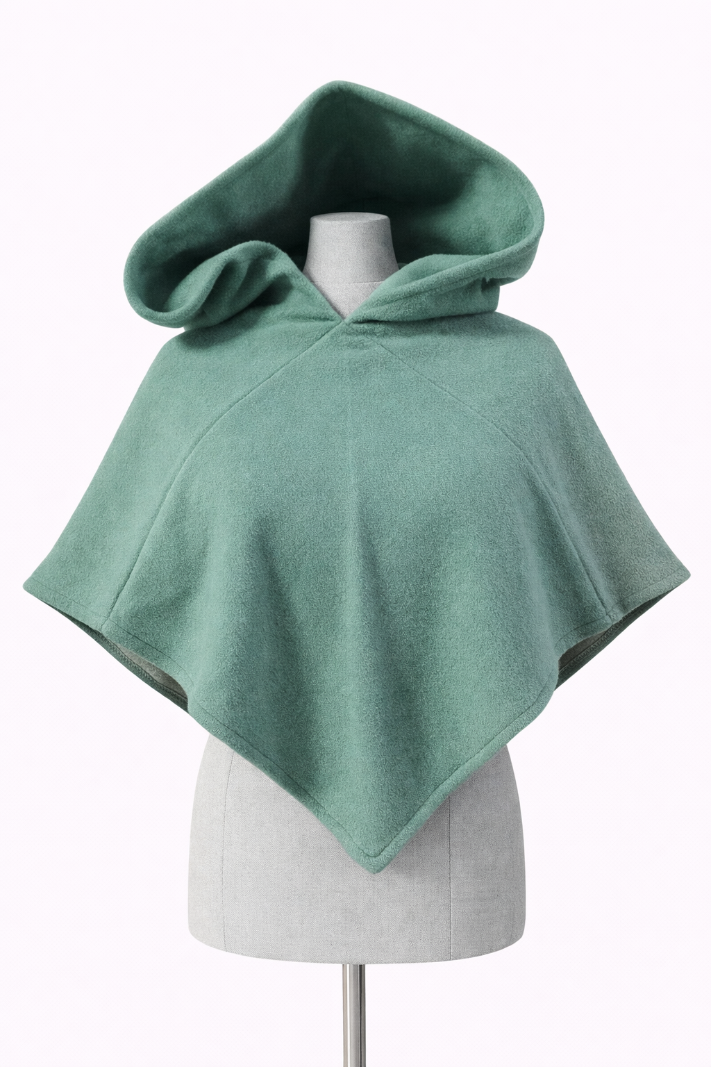 Kapuce je z hebké tyrkysové vlny bez podšívky. Má delší obvod pro hlavu než obvykle, a to 90cm.