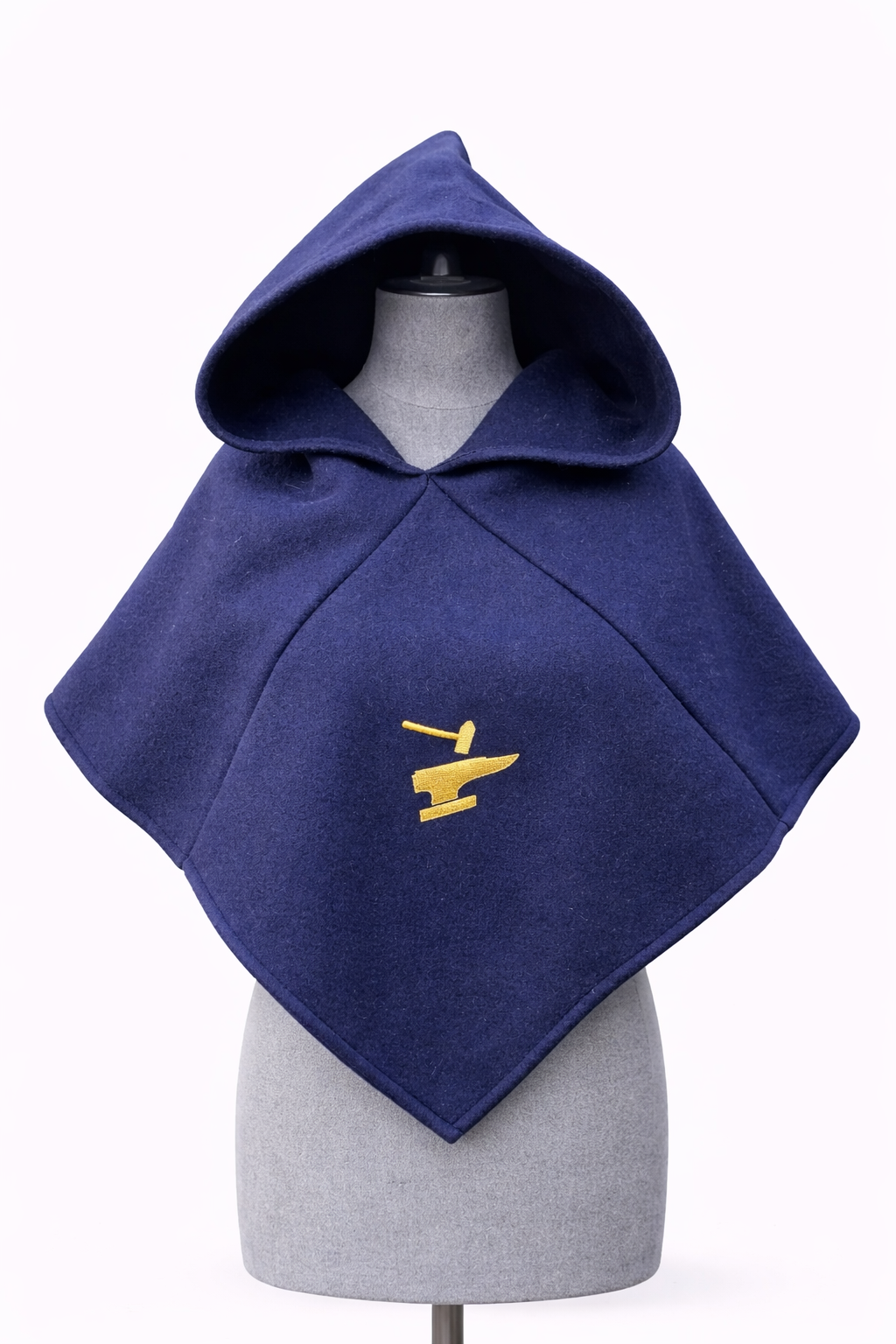 Kapuce zdobená strojovou výšivkou zlaté kovadliny.
