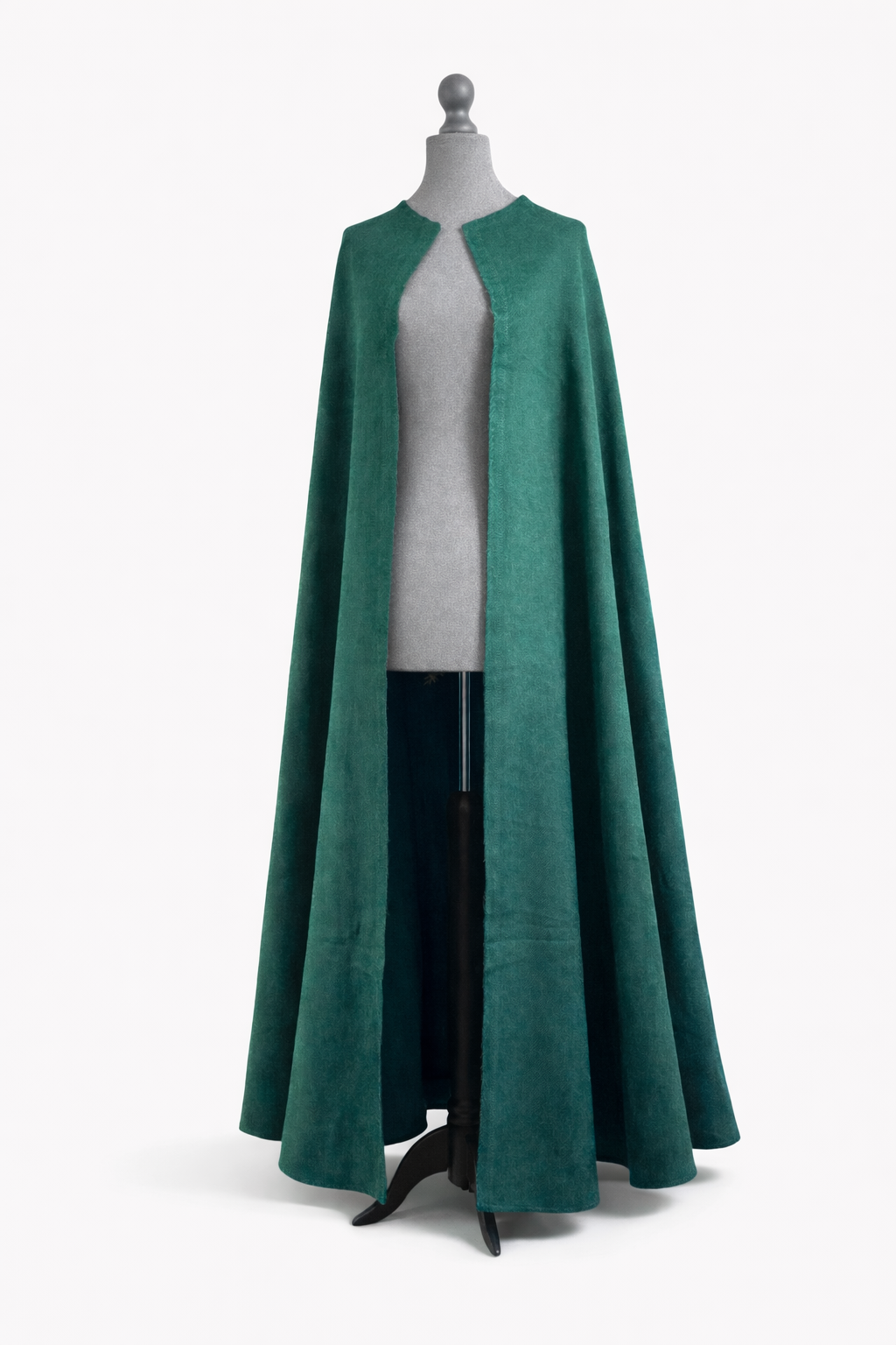 Na skladě máme plášť bez zapínání, možné přidat zapínání na knoflík nebo našít ozdobné spony.
