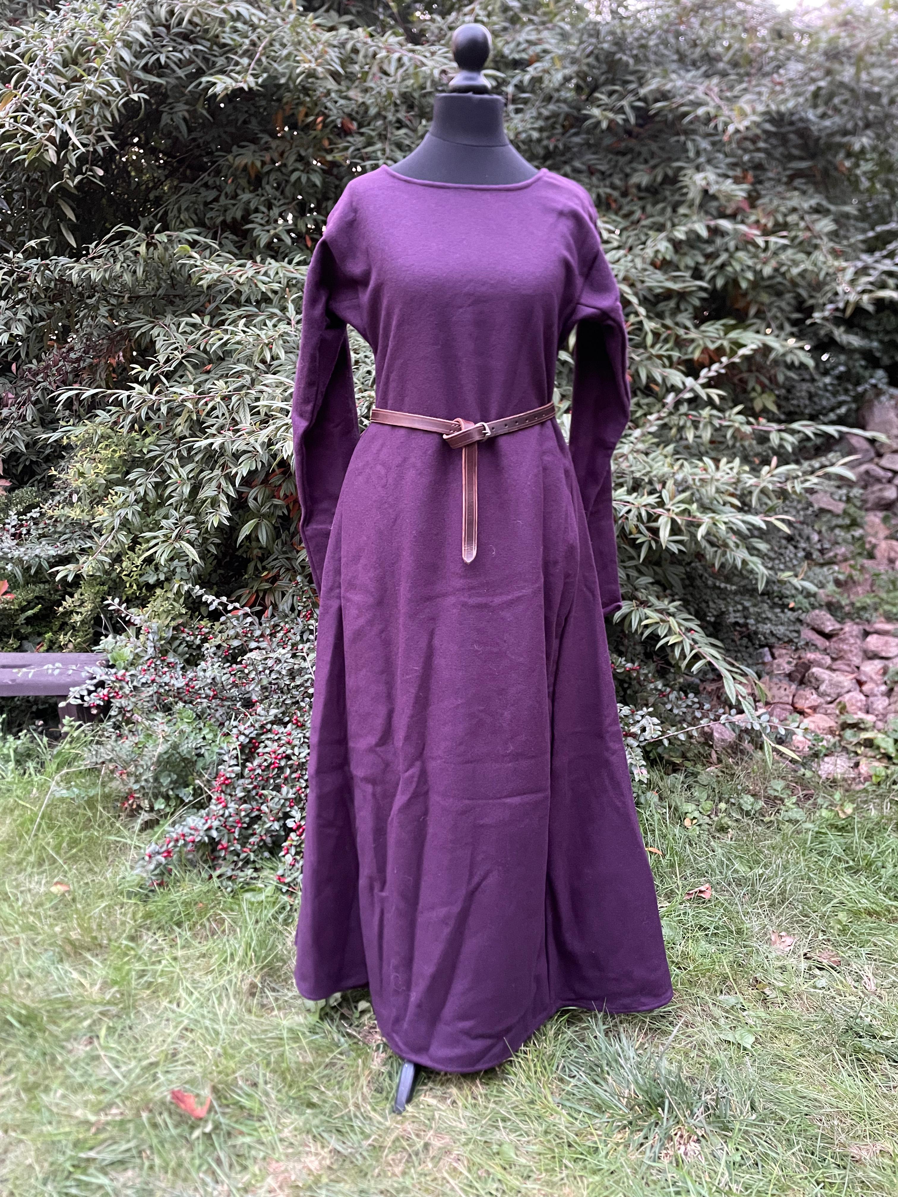 Šaty z fialové vlněné látky, tlusté a velmi hřejivé.