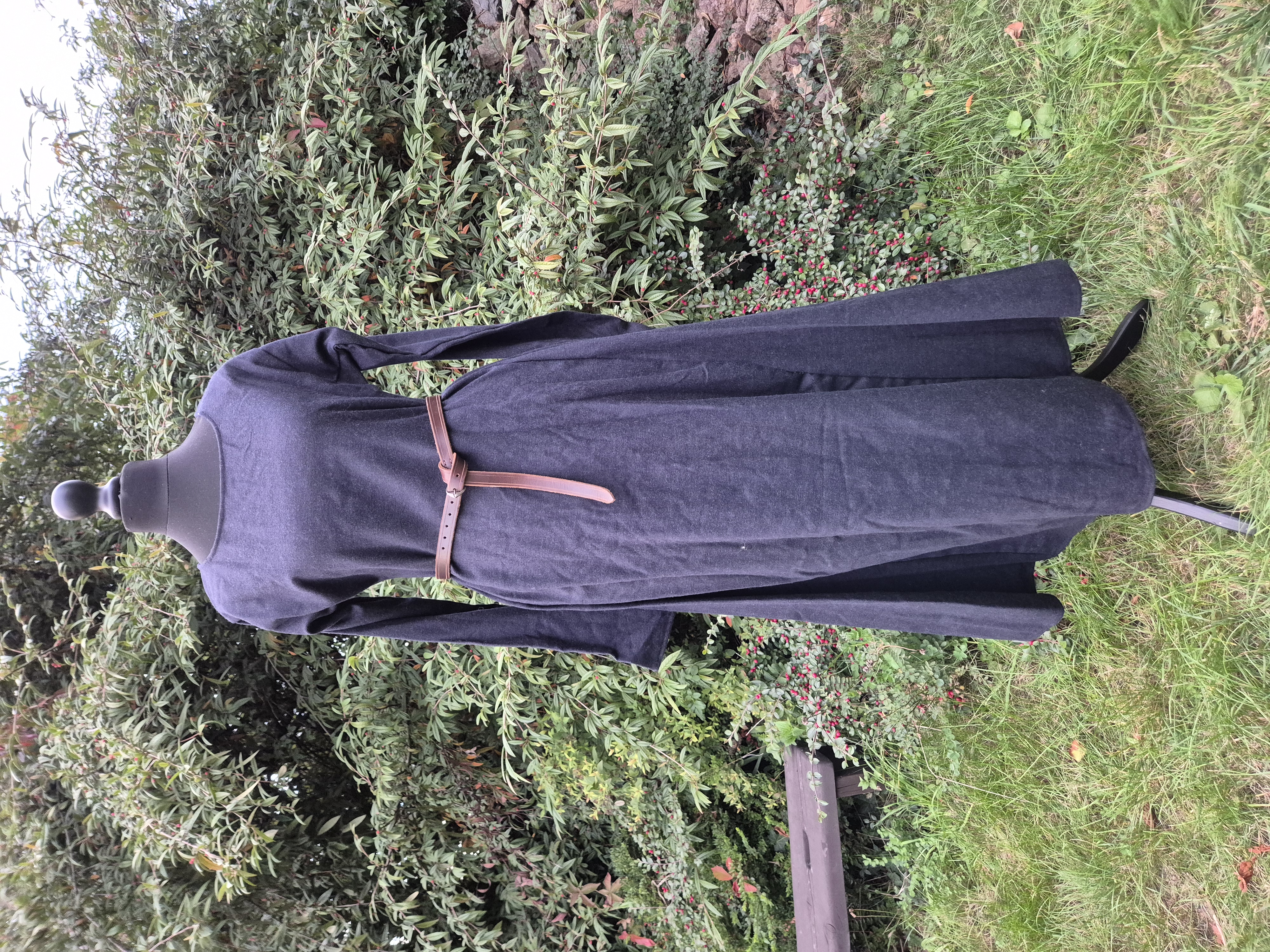 Šaty z antracitově zbarvené vlněné látky, poměrně tenké.