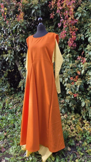 Vrchní čtyřklínové šaty bez rukávů ze středně tenké oranžové vlny.